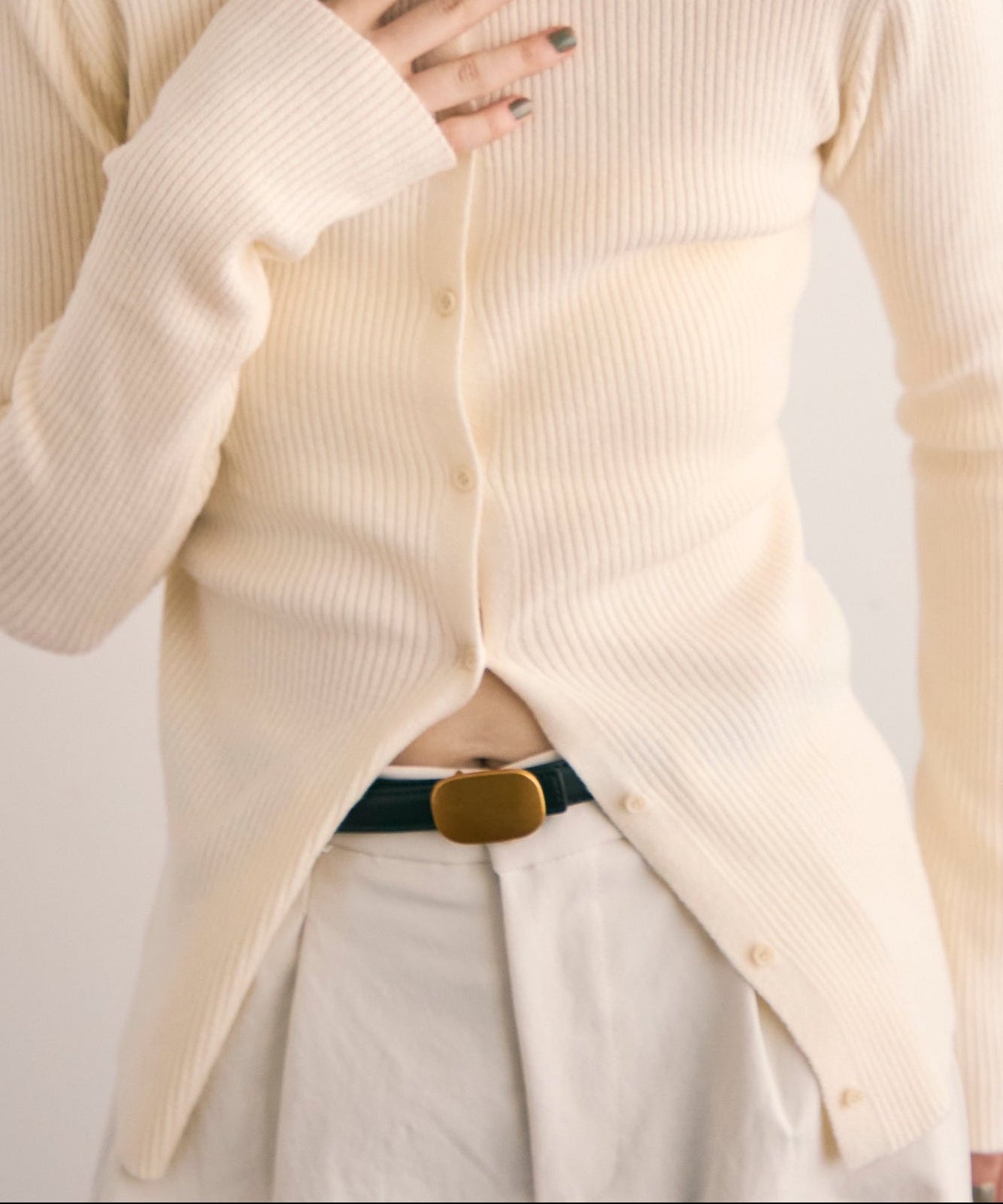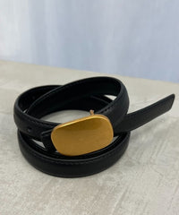 ゴールドバックルベルトシンプルながらも上品な輝きを放つ、ゴールドバックルが目を引くベルト。