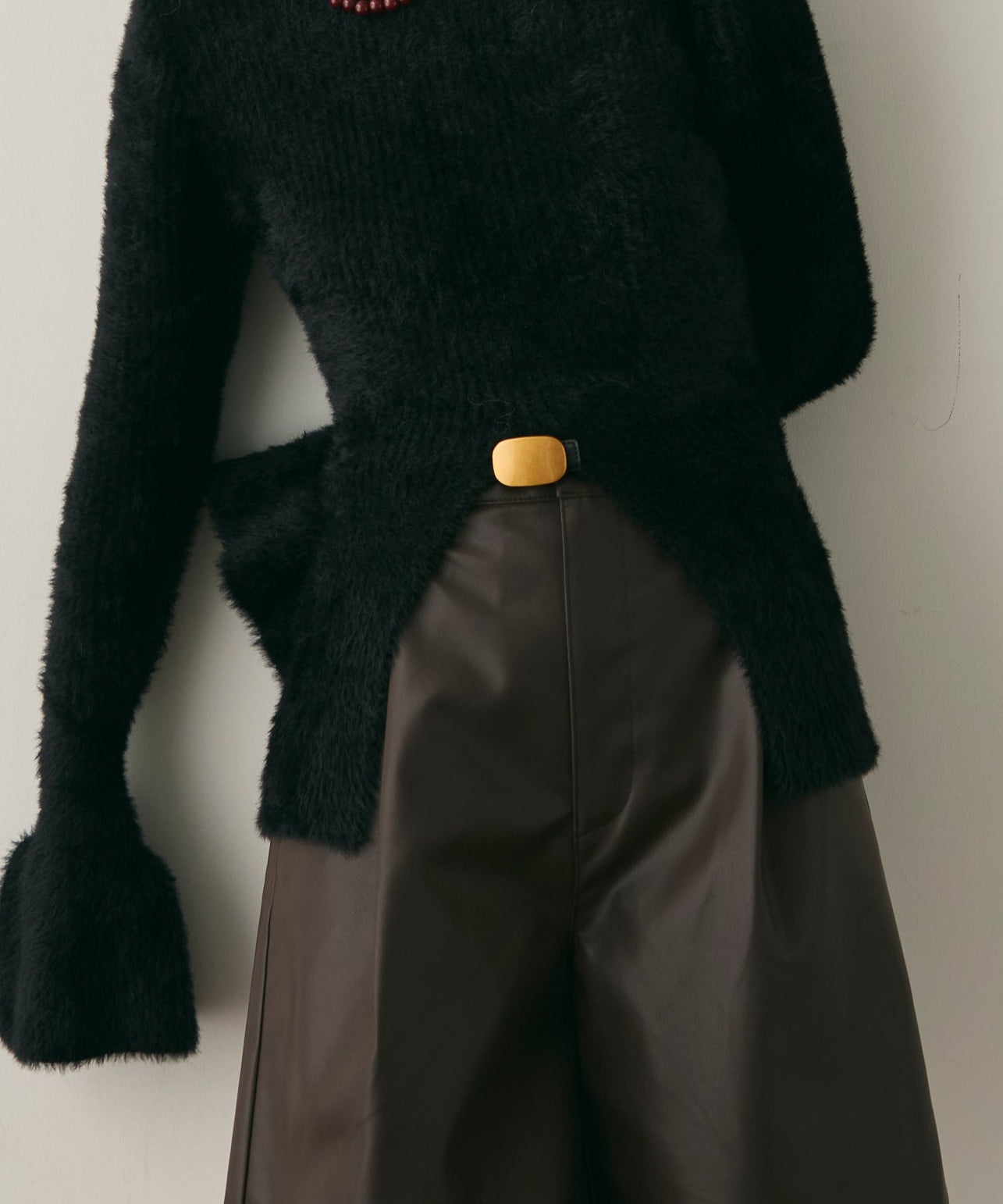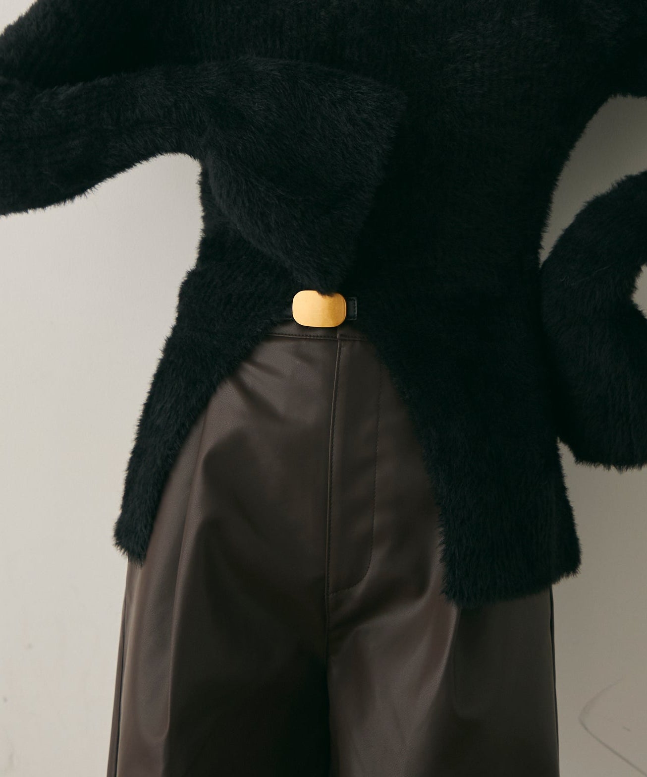 程よいツヤ感のあるフェイクレザー素材を使用し、どんなスタイリングにも馴染む万能アイテムです。