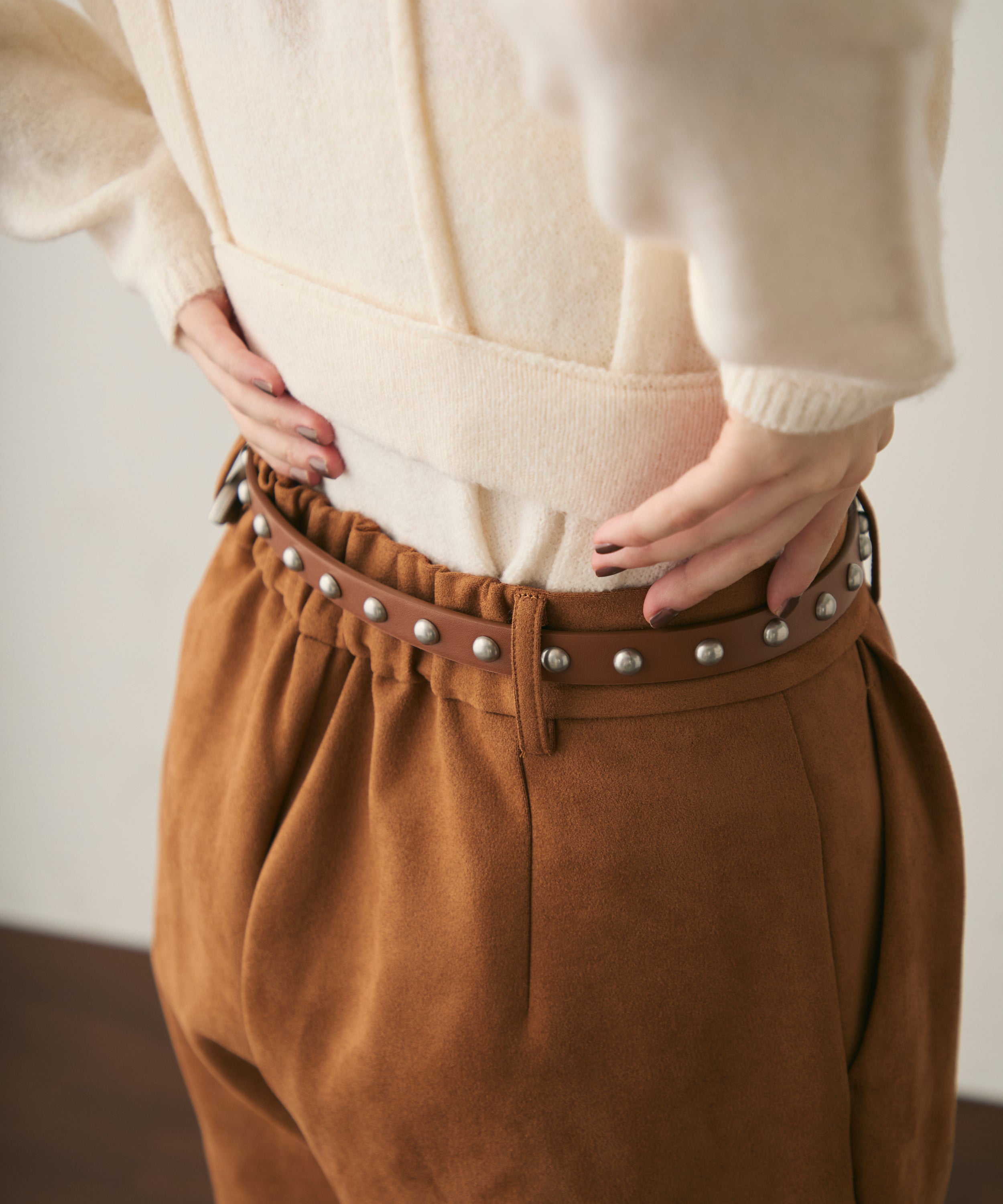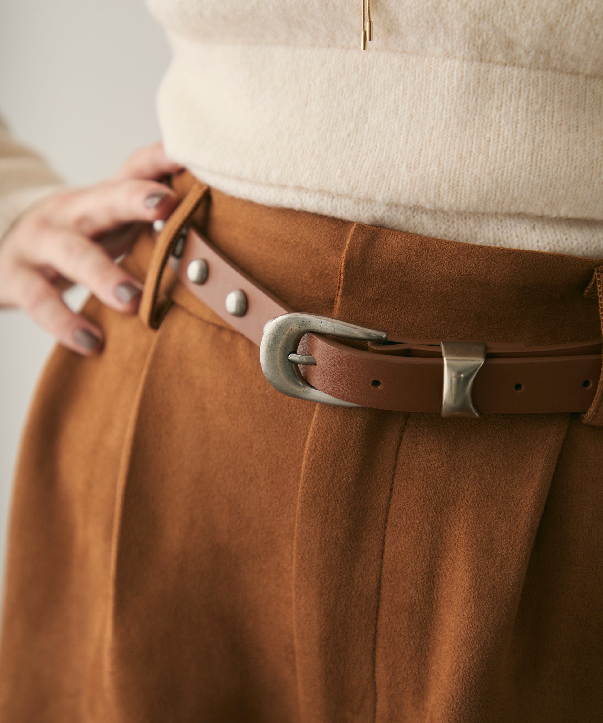 しなやかなフェイクレザー素材で扱いやすく、パンツスタイルはもちろん、ワンピースやジャケットのウエストマークにもおすすめ。