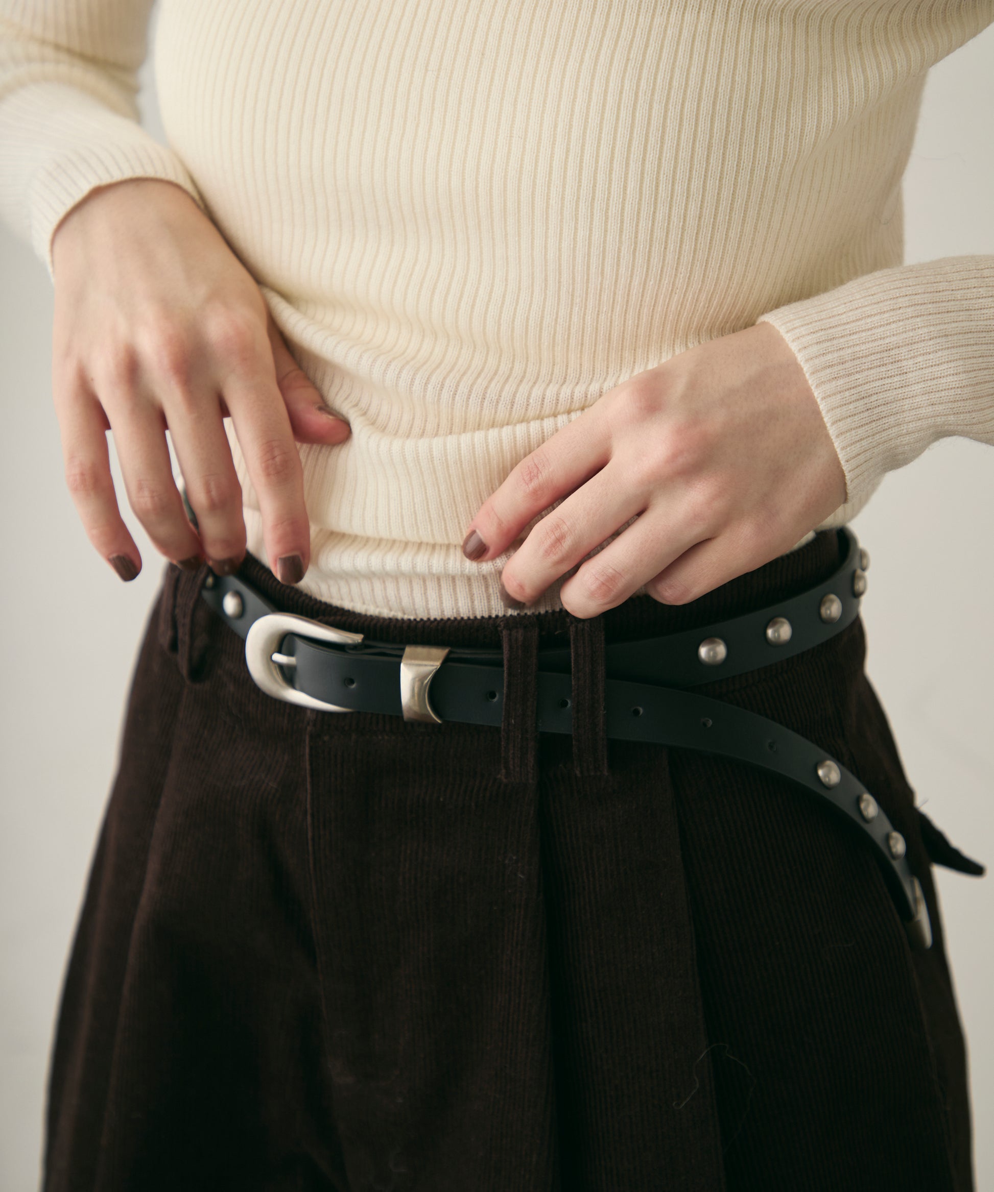 スタッズベルト程よい存在感を放つスタッズがアクセントになった、トレンド感たっぷりのベルト。