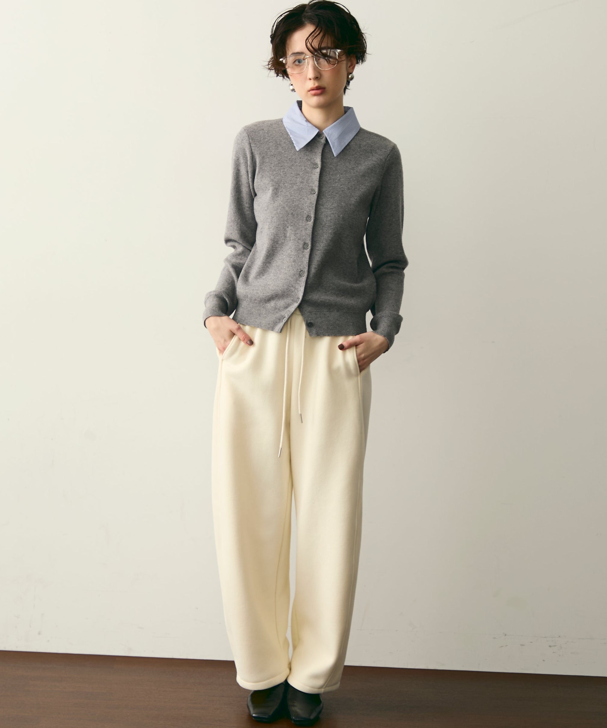 シンプルなデザインでコーディネートもしやすく、ワードローブに一枚あると便利なアイテムです。