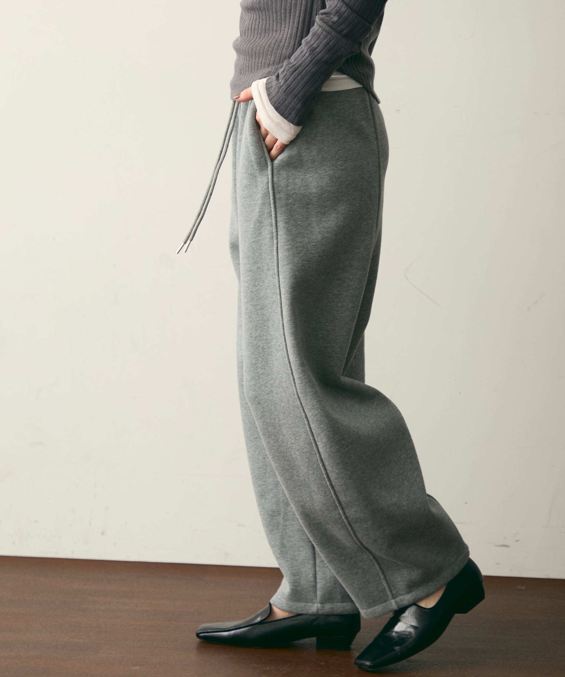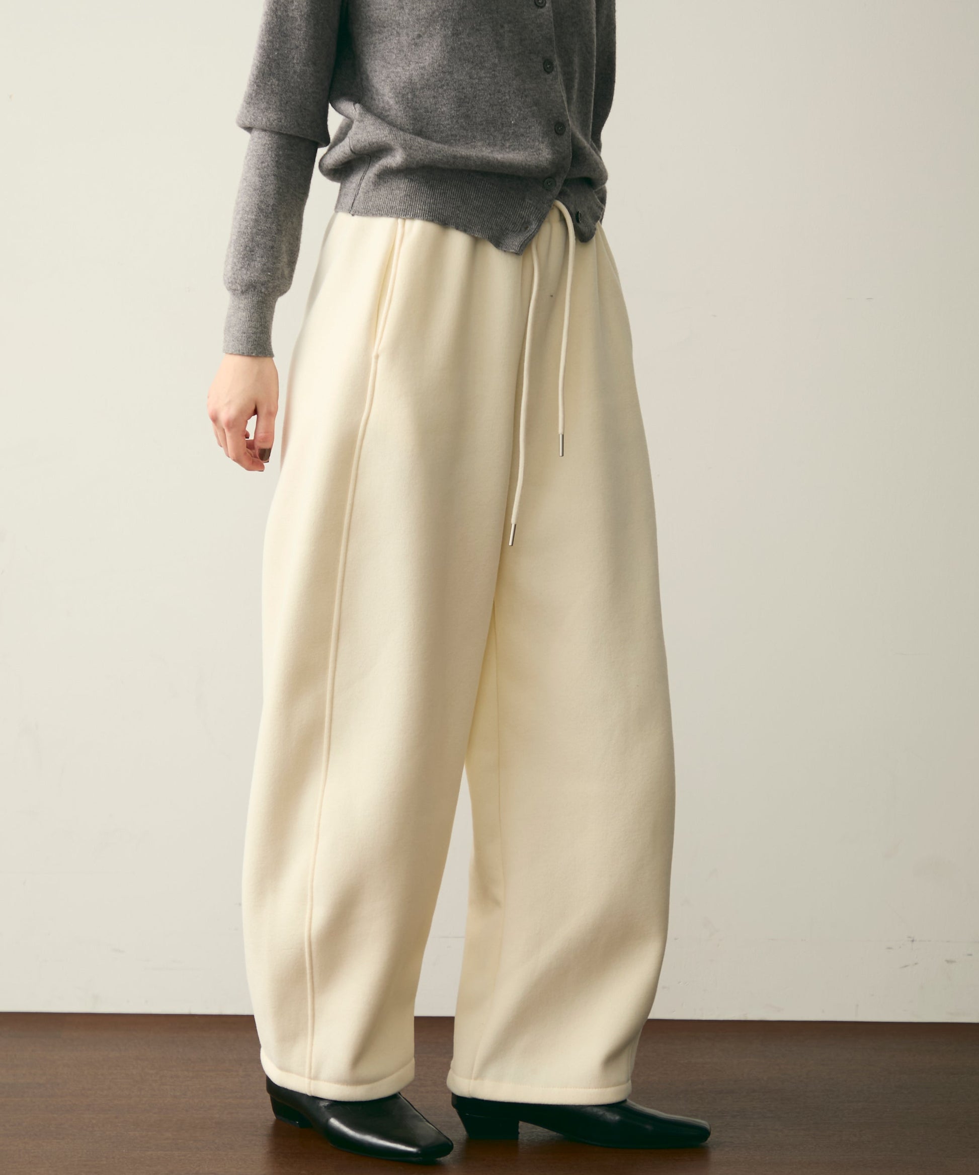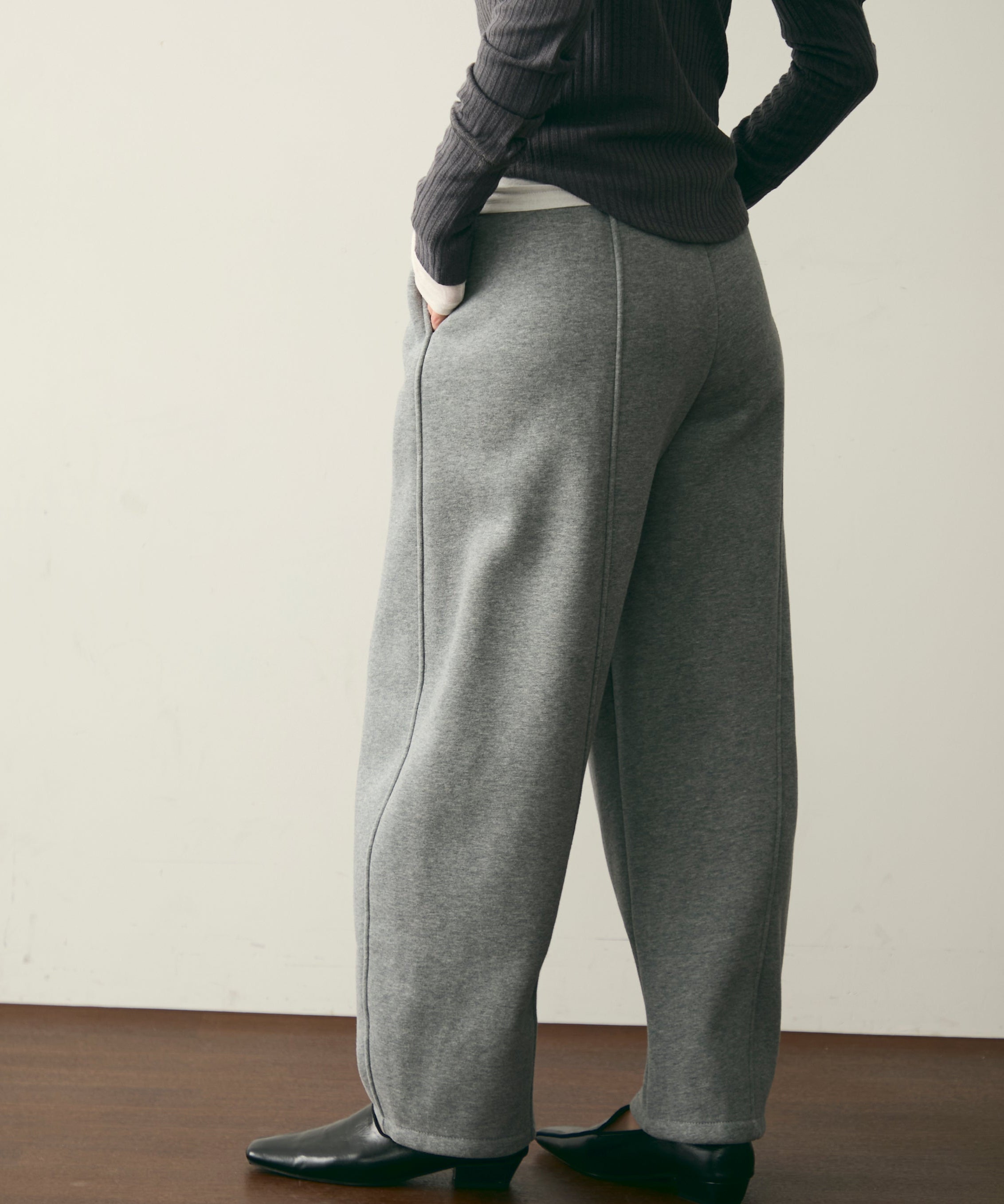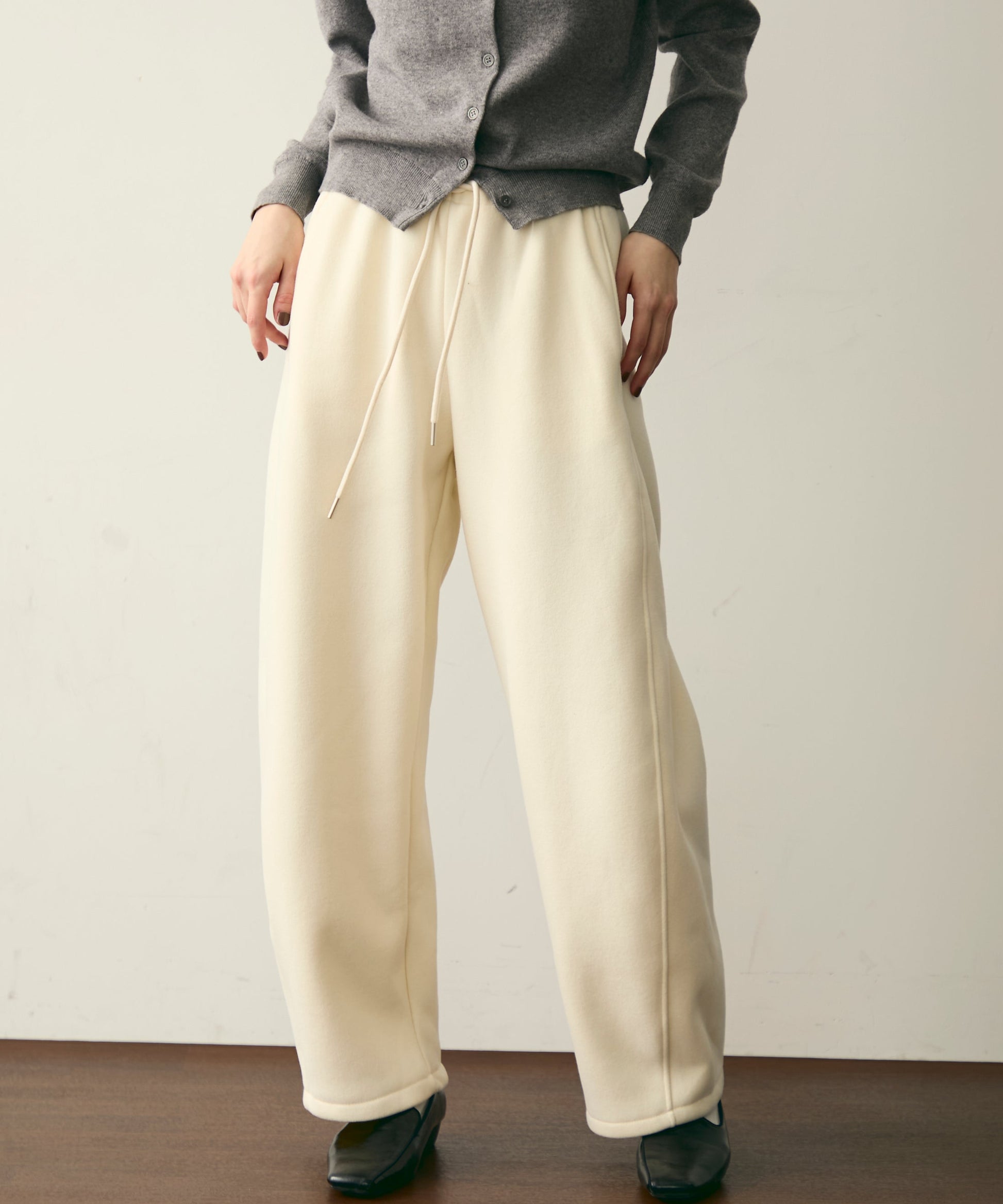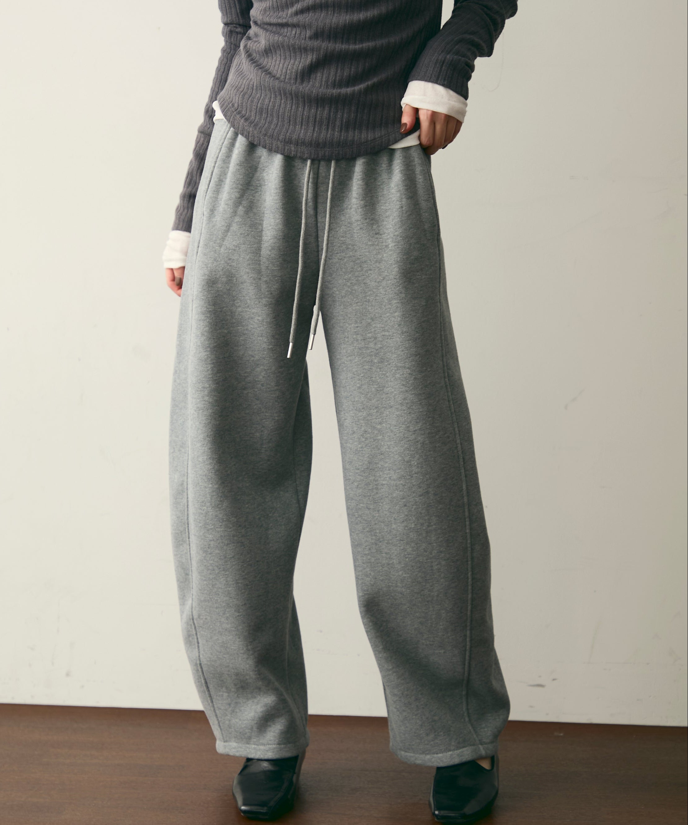 ウエストドロスト裏起毛スウェットカーブパンツ