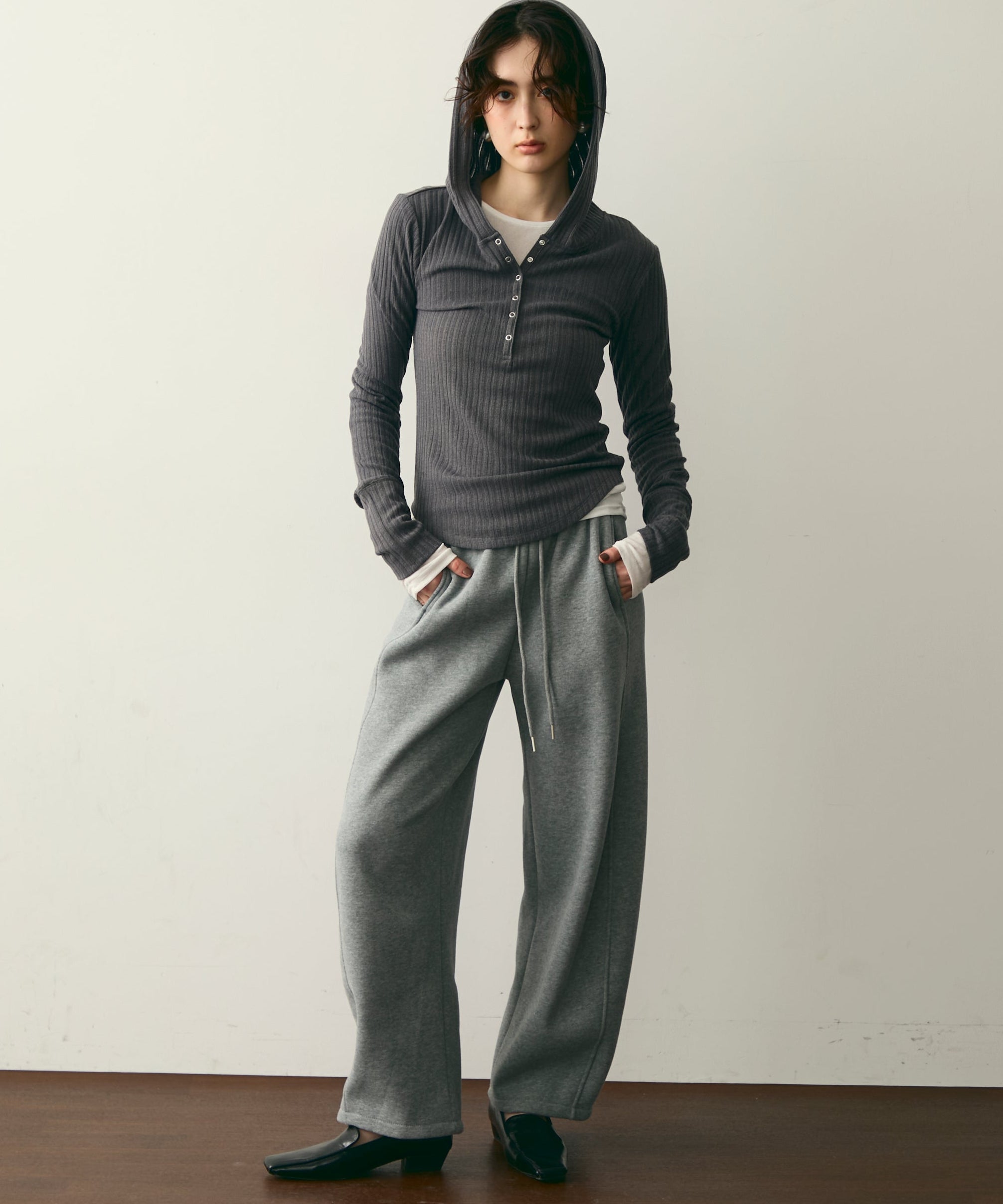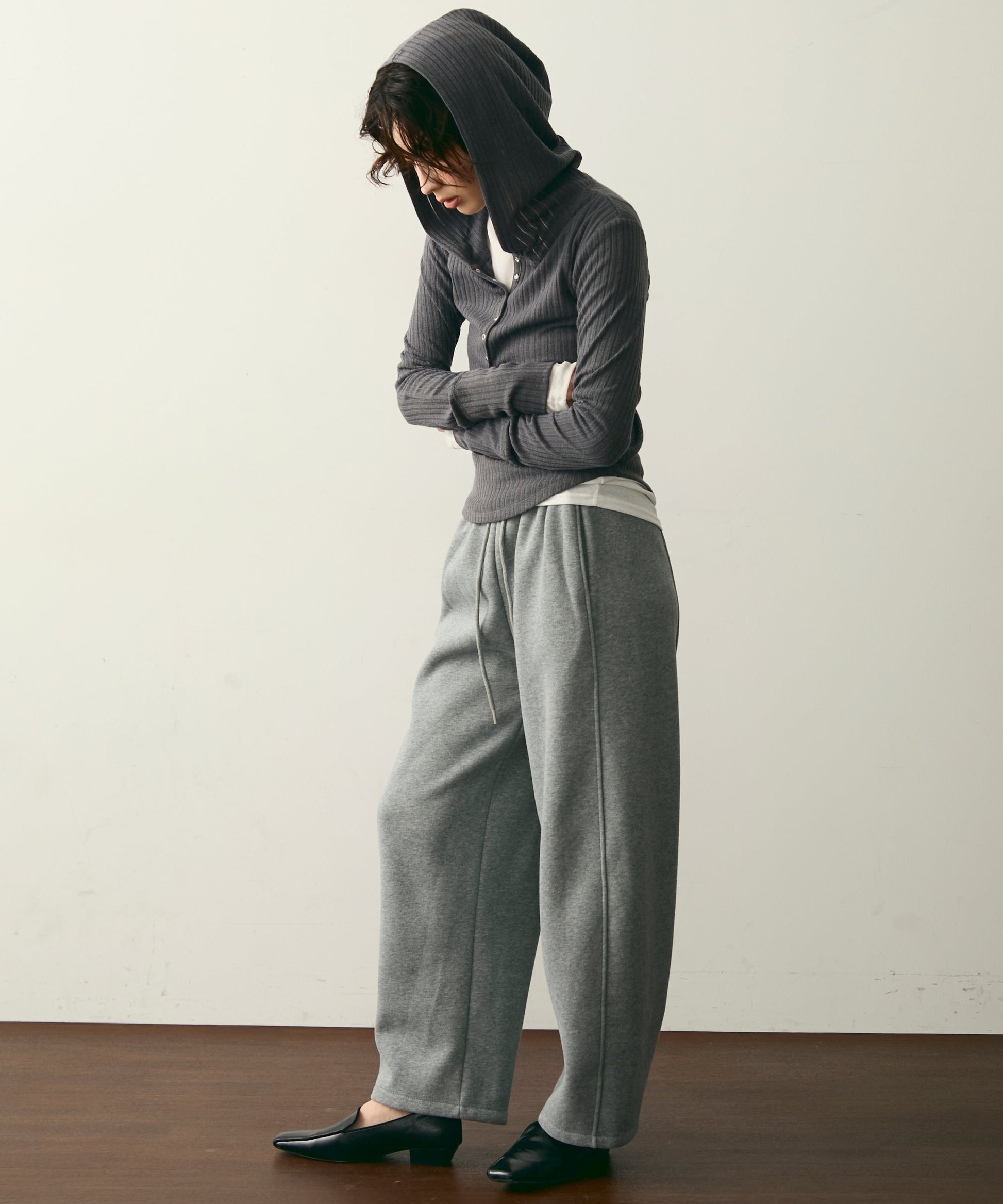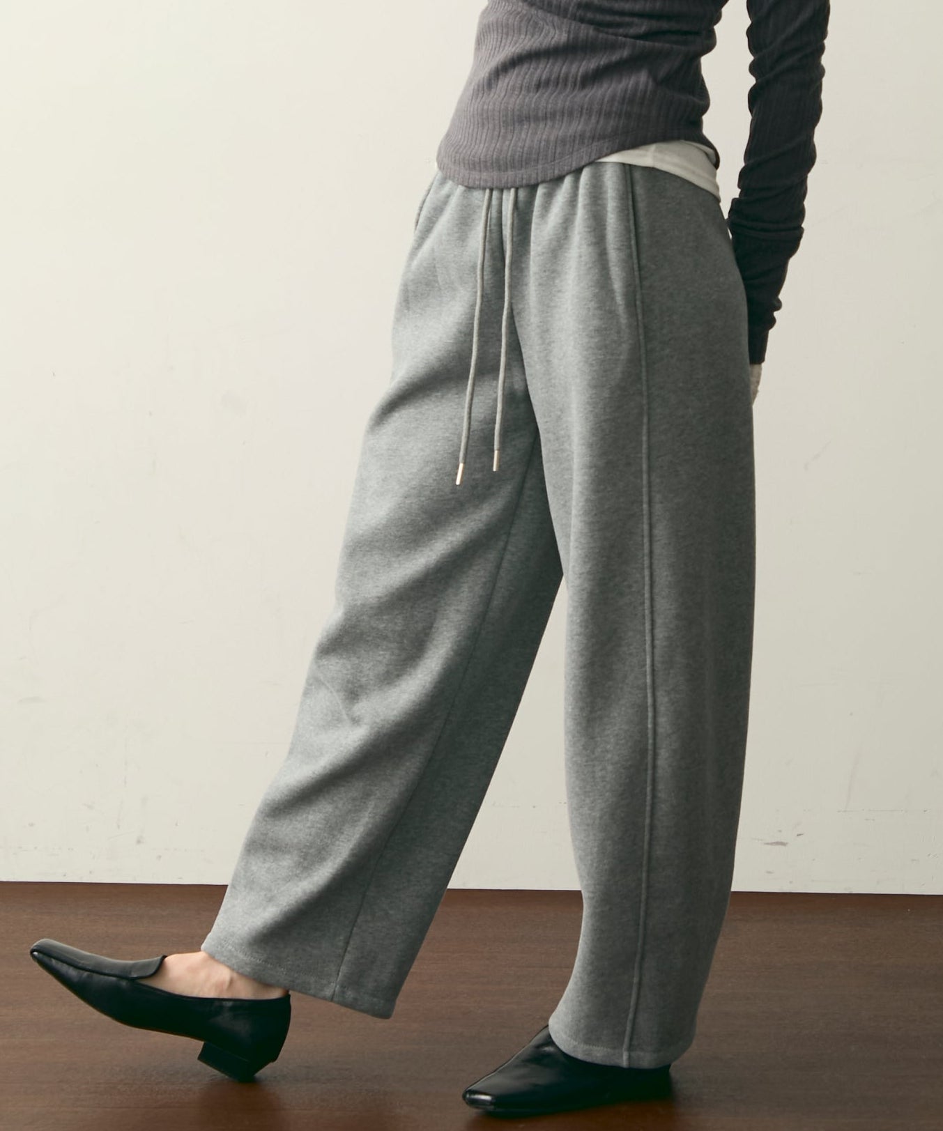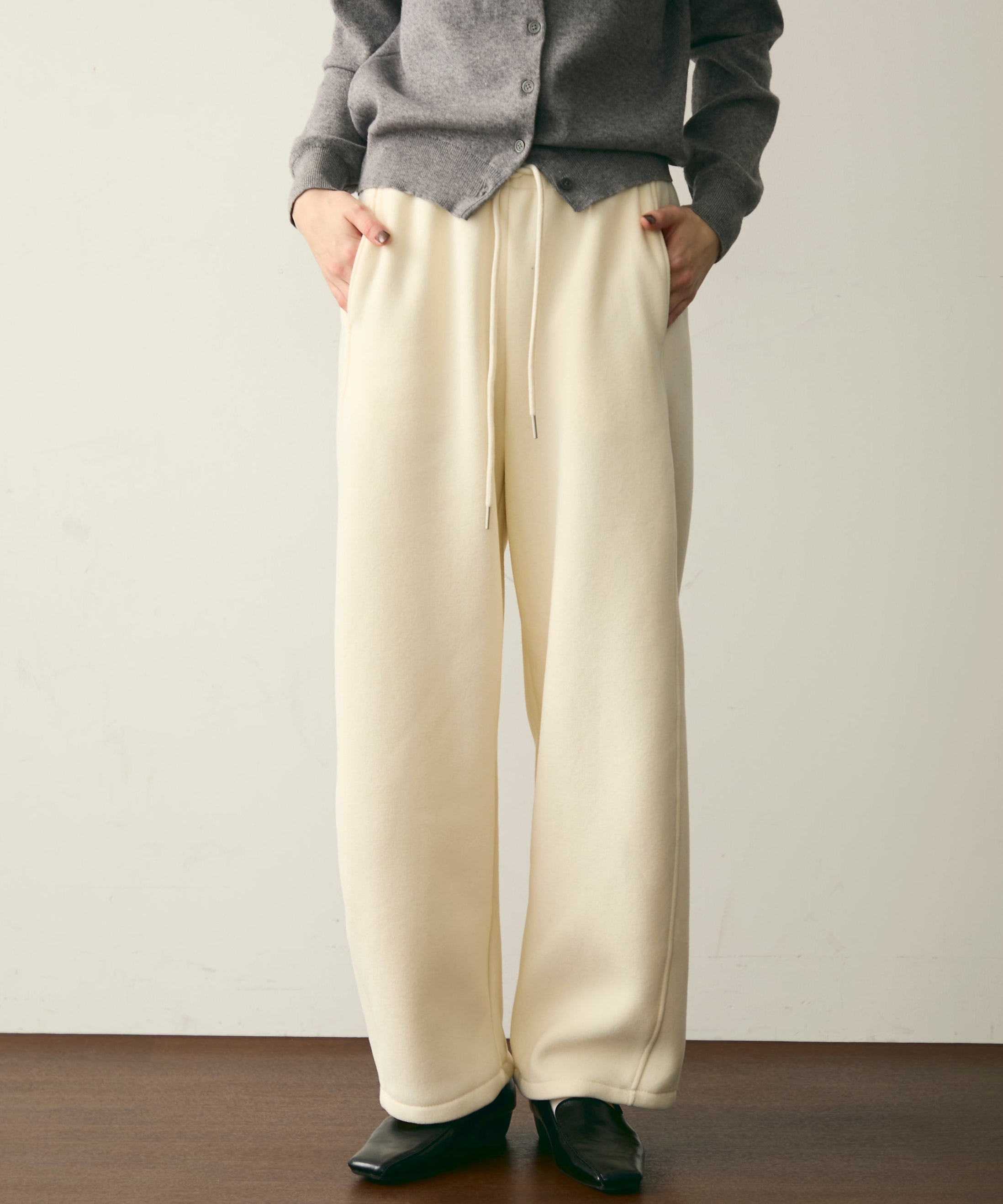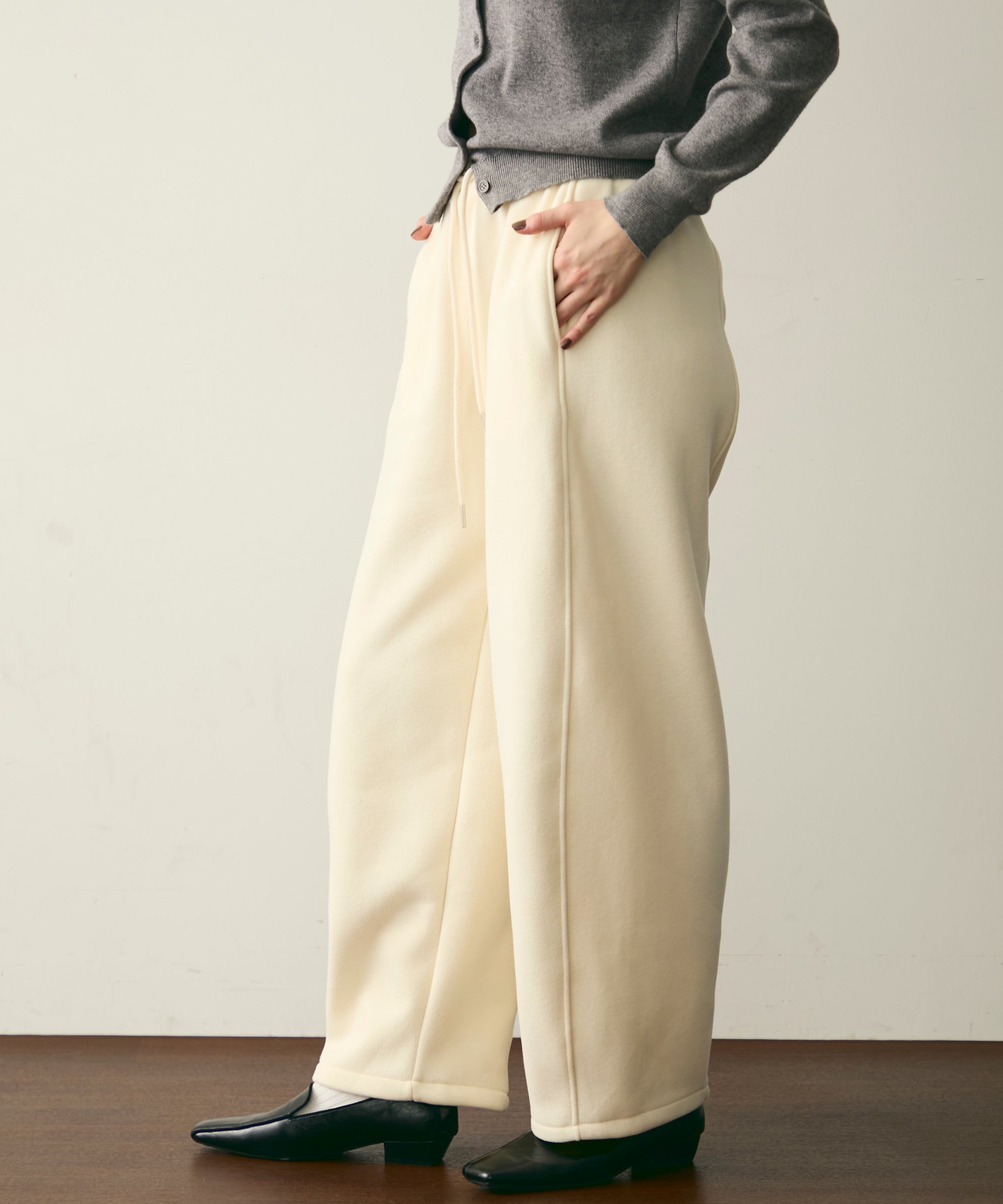 ウエストドロスト裏起毛スウェットカーブパンツ