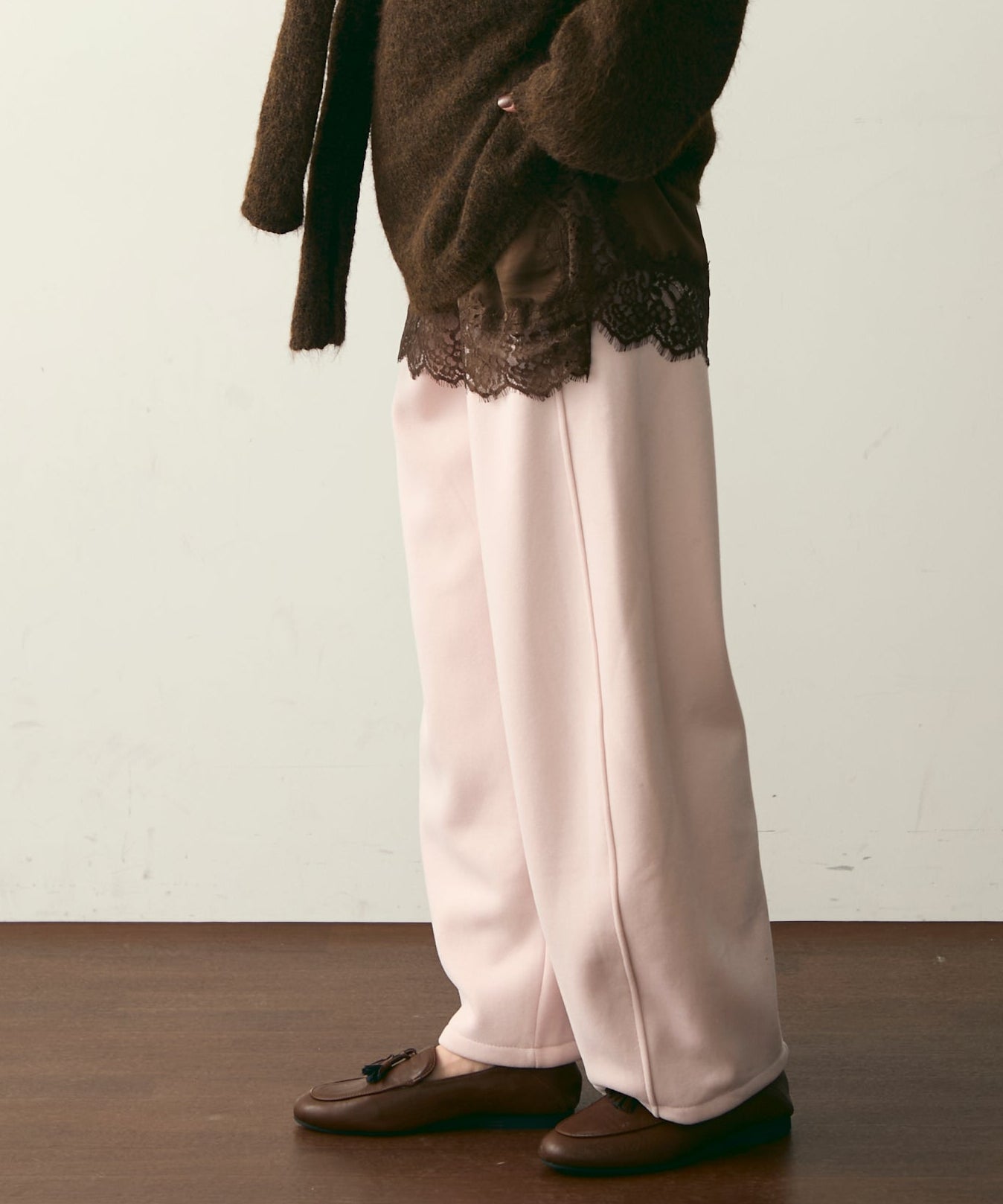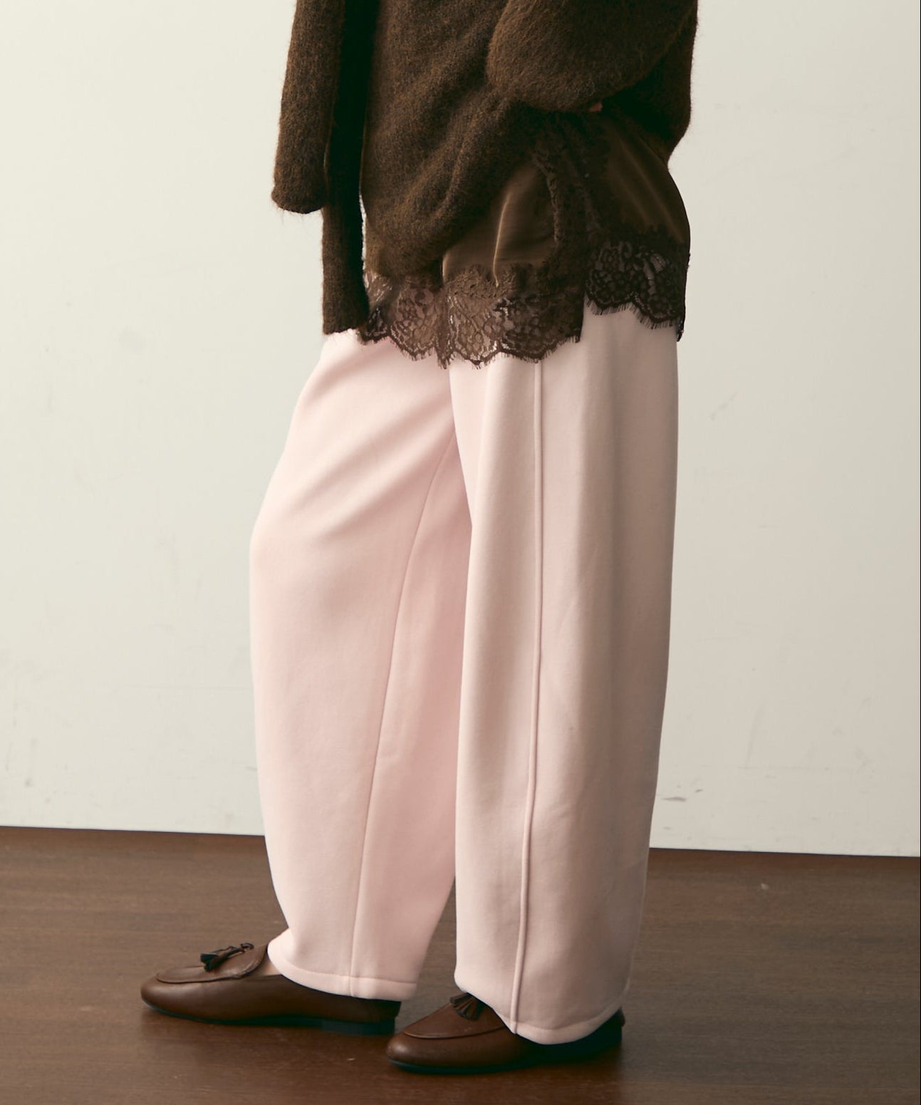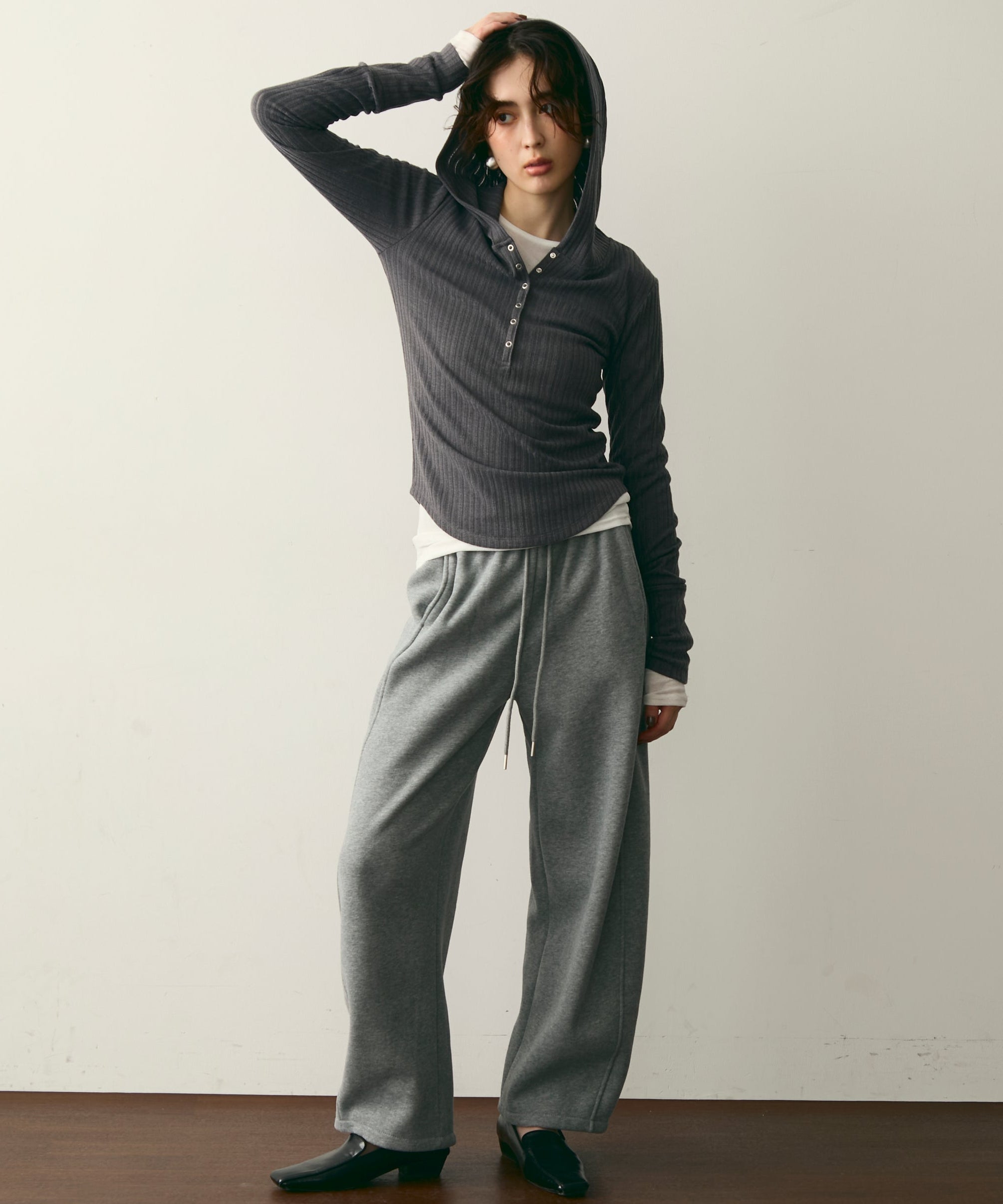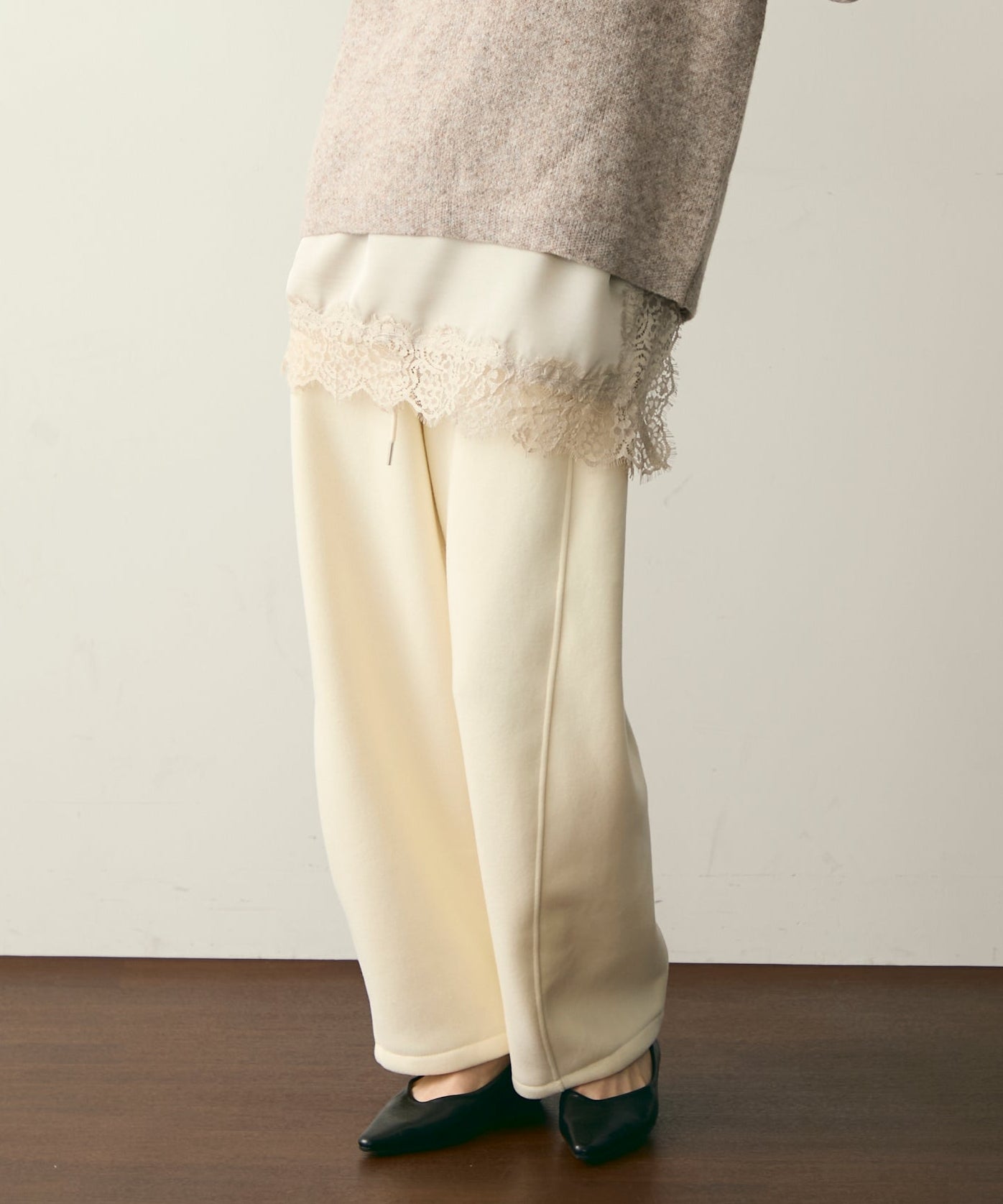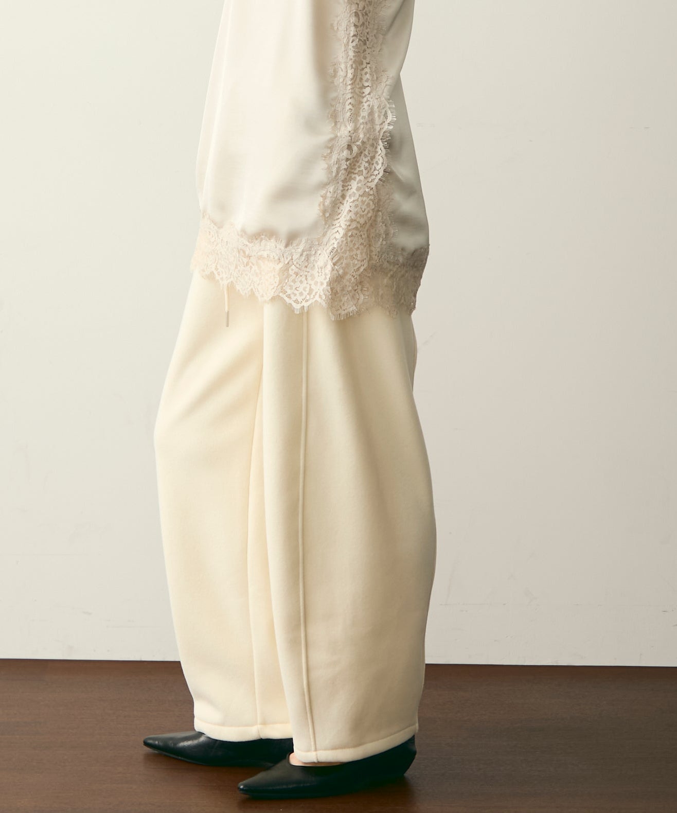 ウエストドロスト裏起毛スウェットカーブパンツ